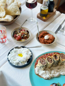 Guests are welcomed with a complimentary selection of small appetisers — mezze. This is a tradition of Mediterranean countries. Through this, the restaurant staff aims to provide guests with an experience of Turkish culture.