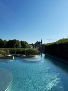 In the aquatic area, you’ll find a range of pools including a 25-meter sports pool, leisure pool, children’s splash zone, and an inviting outdoor pool that opens up in the warmer months. Here, everyone can find an activity to their taste: swimming laps, floating under the natural light, or watching your little ones explore the interactive water features. It’s a place designed to bring joy and motion together.