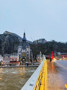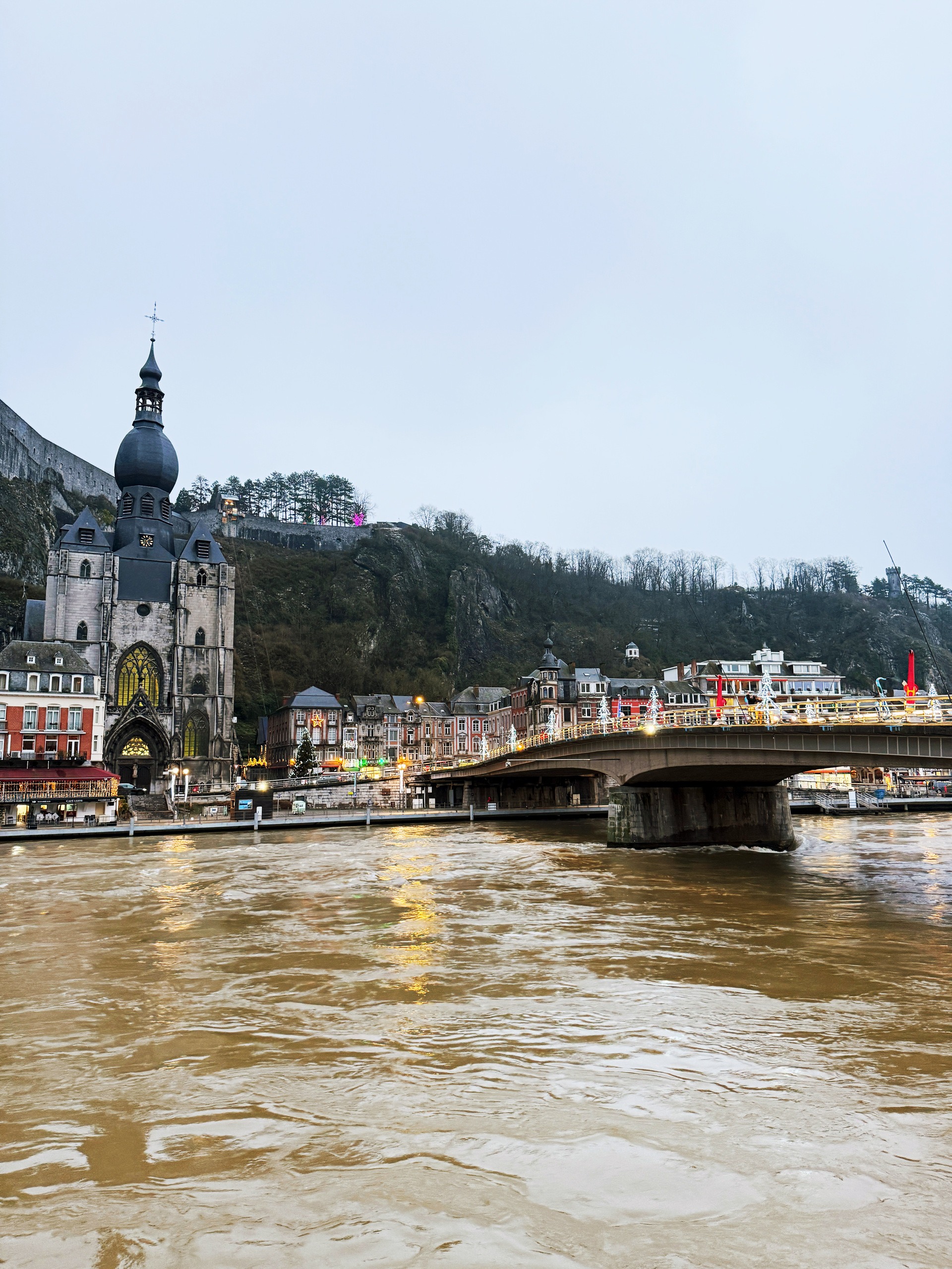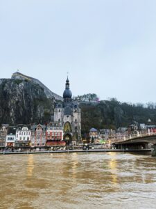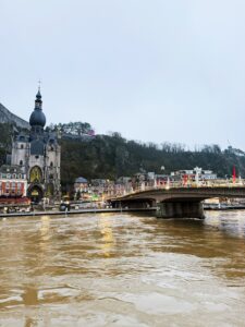 The Collegiate Church of Our Lady in Dinant (Collégiale Notre-Dame de Dinant) is a stunning Gothic landmark, set along the banks of the Meuse River. It was built in the 13th century and replaced an earlier Romanesque church that collapsed after a rockfall in 1227. Its unique pear-shaped bell tower is one of the most recognizable features of Dinant’s skyline.
