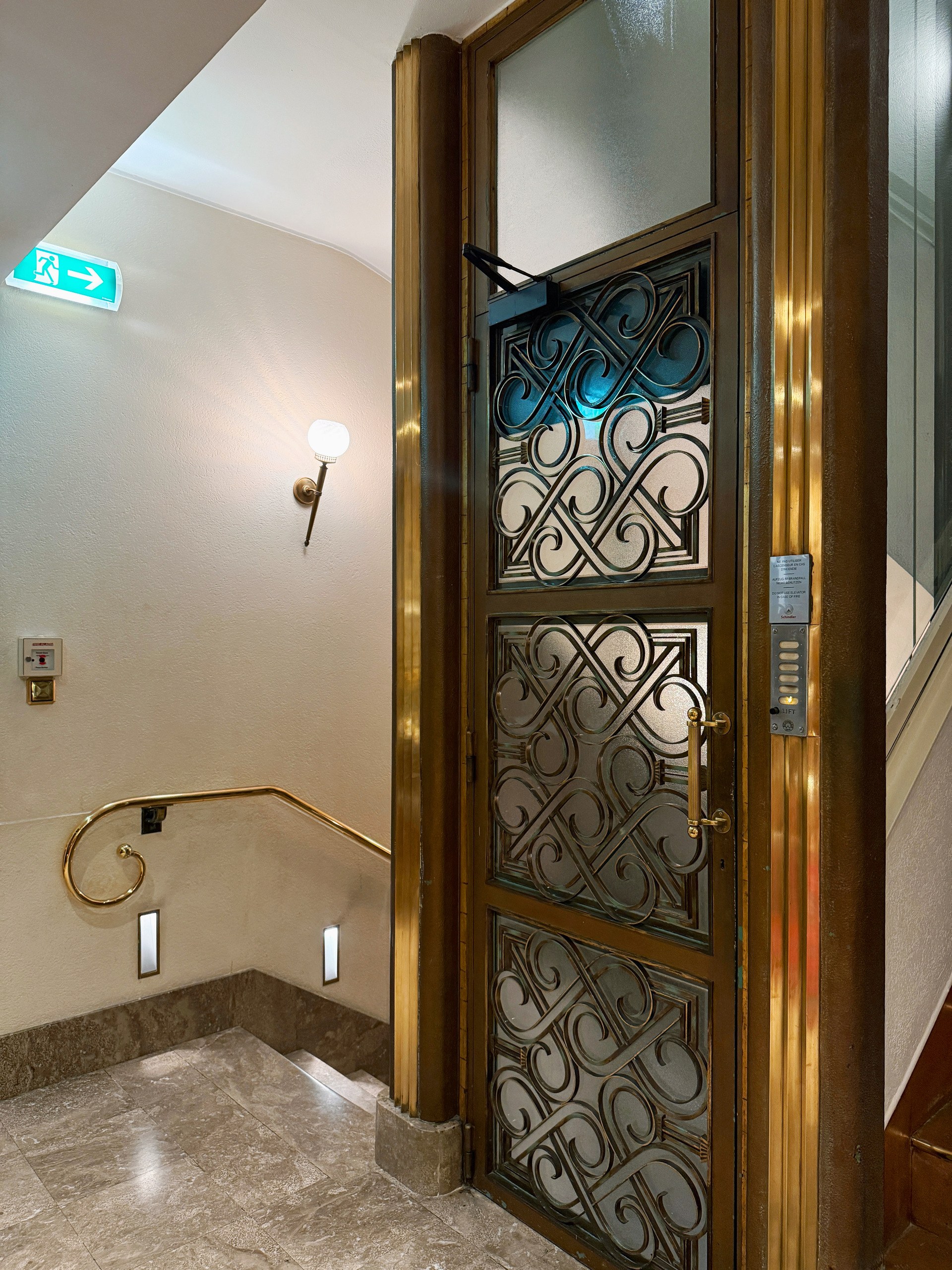 That history is visible in the architecture itself. The hotel was formed from three separate buildings, each once equipped with its own elevator. In the oldest section, built in 1932, a lift installed in 1945 still operates today and is now considered the oldest working elevator in Luxembourg.