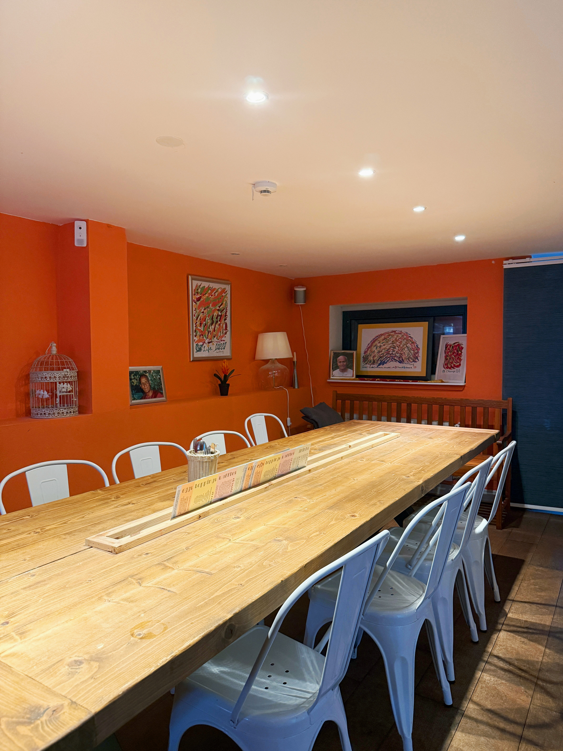 Inside, Heart-Garden feels cozy and welcoming. It’s family-friendly with space for groups, yet calm enough for a solo coffee or quiet chat. The atmosphere is shaped by art, music, and gentle quotes inspired by Sri Chinmoy, whose philosophy of meditation and conscious living inspired the café’s name. His artwork and words create a sense of mindfulness that lingers long after your last bite.