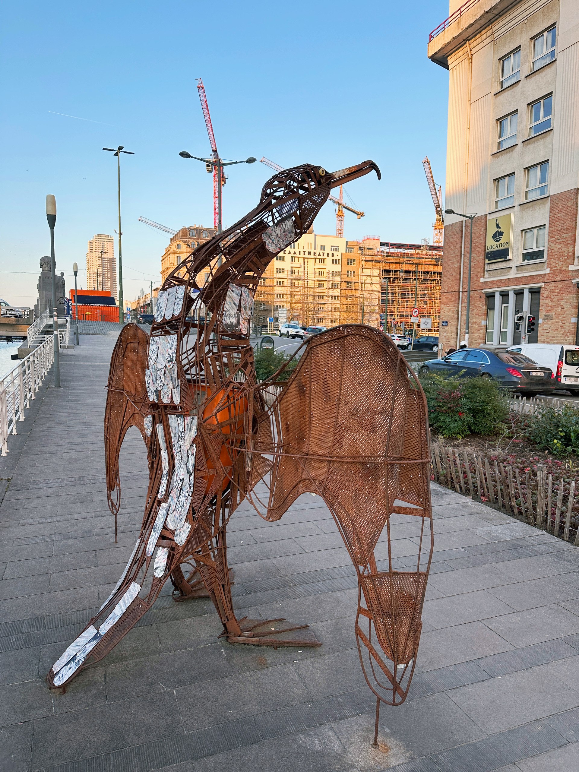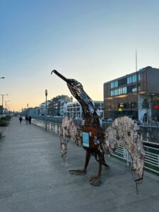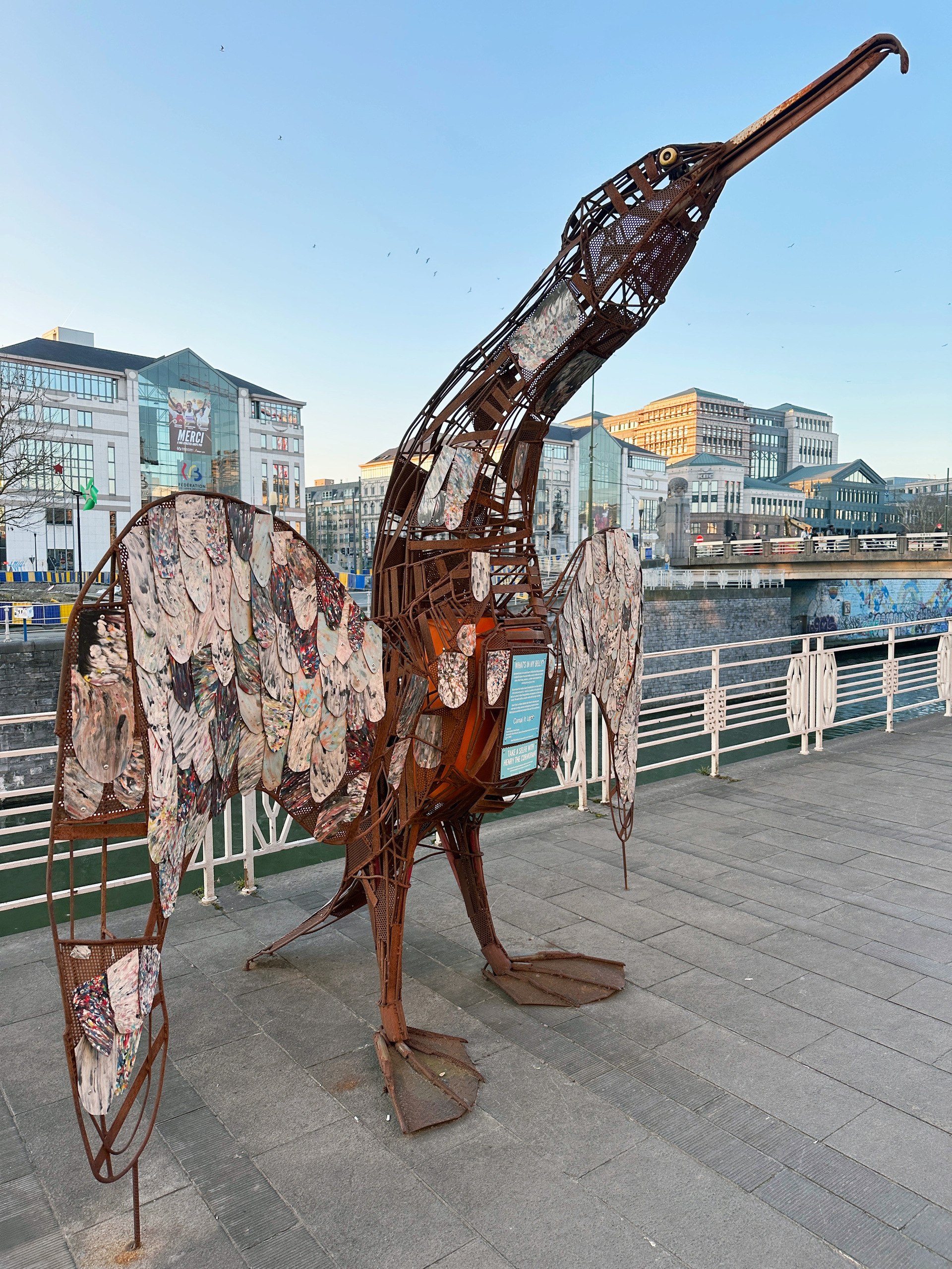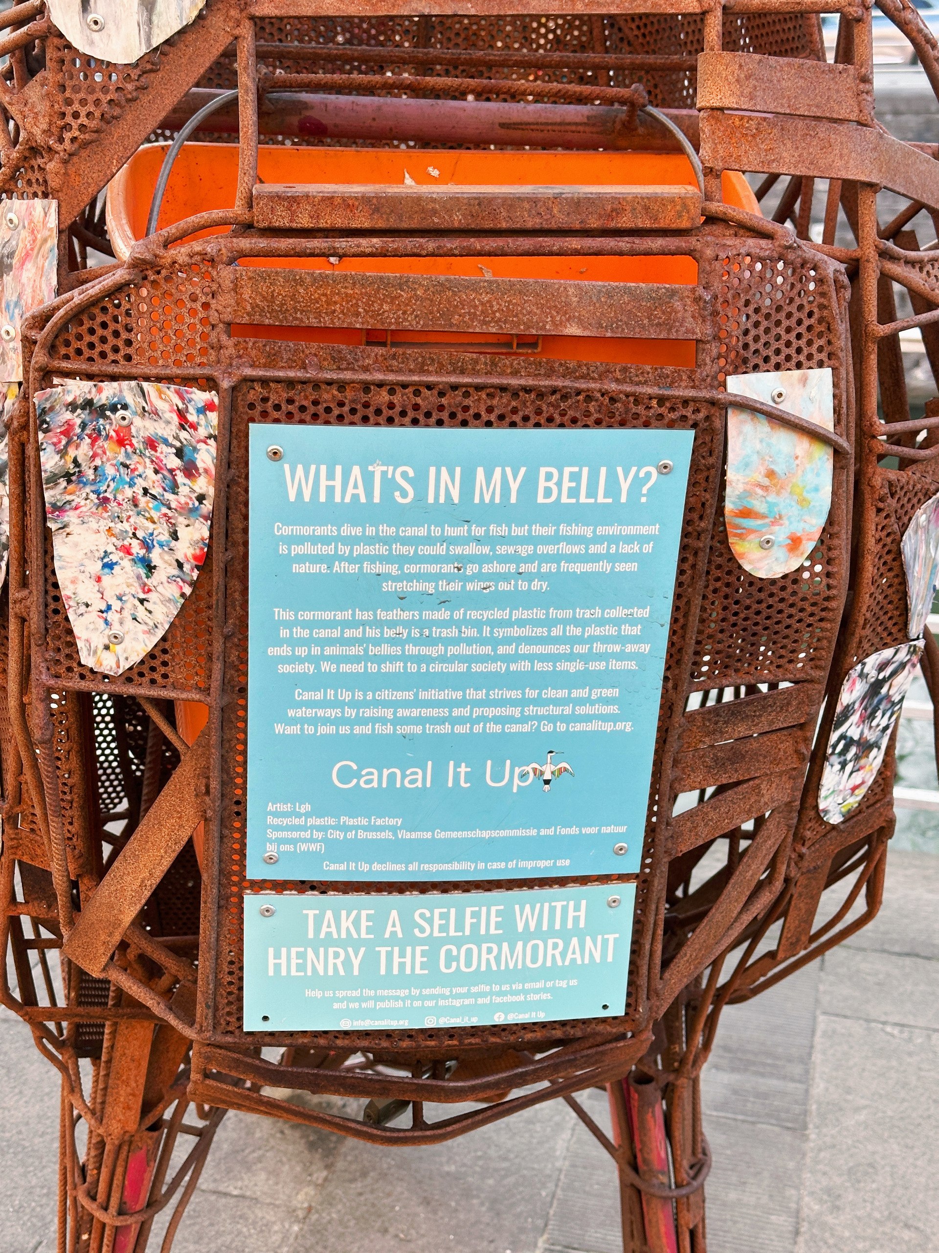 Henry the Cormorant stands proudly on the quay of the Brussels canal and is more than just a sculpture—it’s a powerful statement on plastic pollution. The statue is crafted from recycled materials and serves as a striking visual and a functional trash bin, urging passers-by to dispose of their waste responsibly.