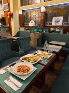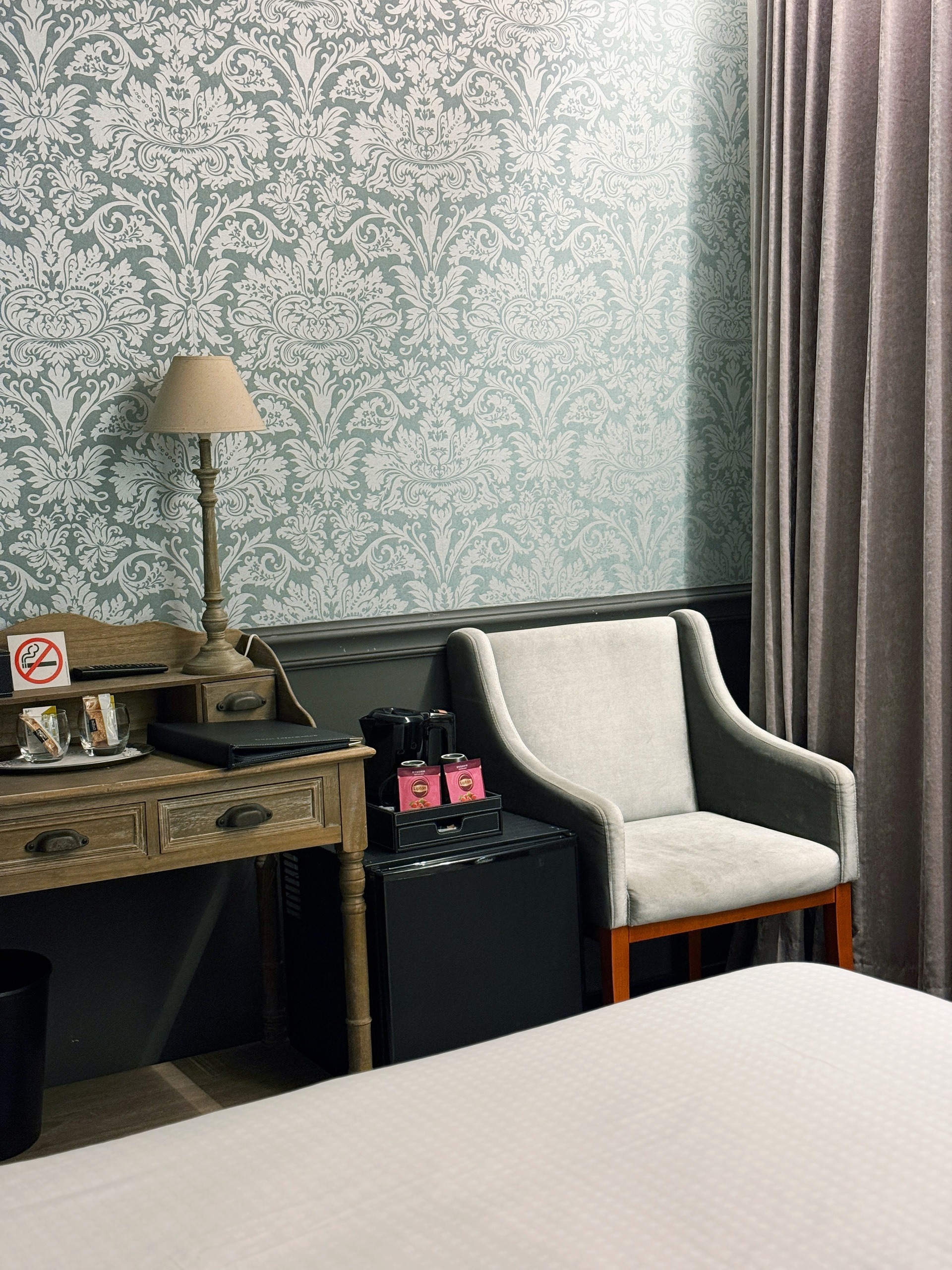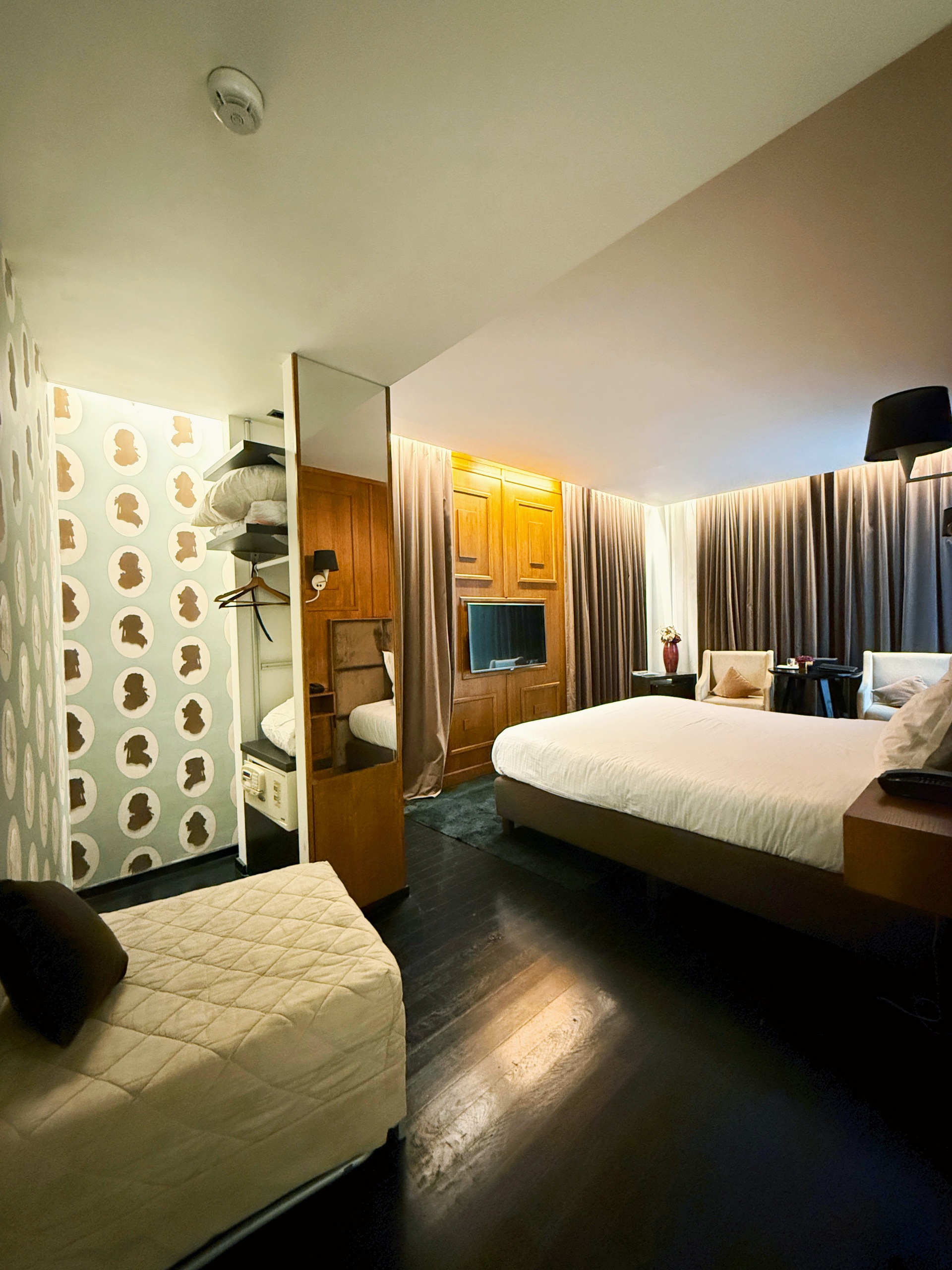 The hotel offers 12 beautifully designed rooms, equipped with everything needed for a comfortable stay: spacious beds, fast Wi-Fi, a minibar, toiletries, and more. One room stands out in particular—its interior fully reflects the Art Deco aesthetic, featuring vintage-style furniture and a luxurious free-standing bathtub in the bathroom.