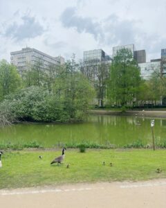 At the heart of the park lies its remarkable pond, fed by the tranquil Maelbeek stream. Here, amidst the lush greenery, you’ll find a haven for wildlife, including mallards, moorhens, coots, and even Egyptian geese and rose-ringed parakeets.