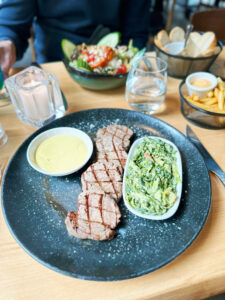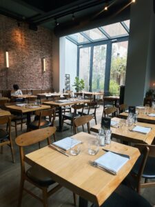 The restaurant is located on the famous Haarlemmerstraat, just a 15-minute walk from Amsterdam Central Station. The interior is designed with a modern loft style, featuring a transparent roof and a large, bright dining hall. Guests are greeted by the impressive dry age unit at the entrance, symbolizing the restaurant’s commitment to taste and quality. The professional kitchen and service team ensure that every guest feels like an honored visitor.