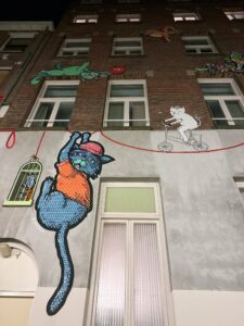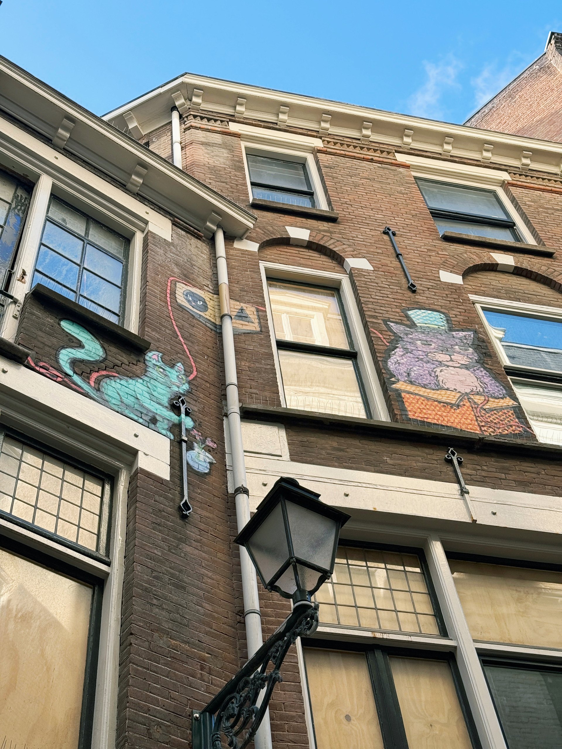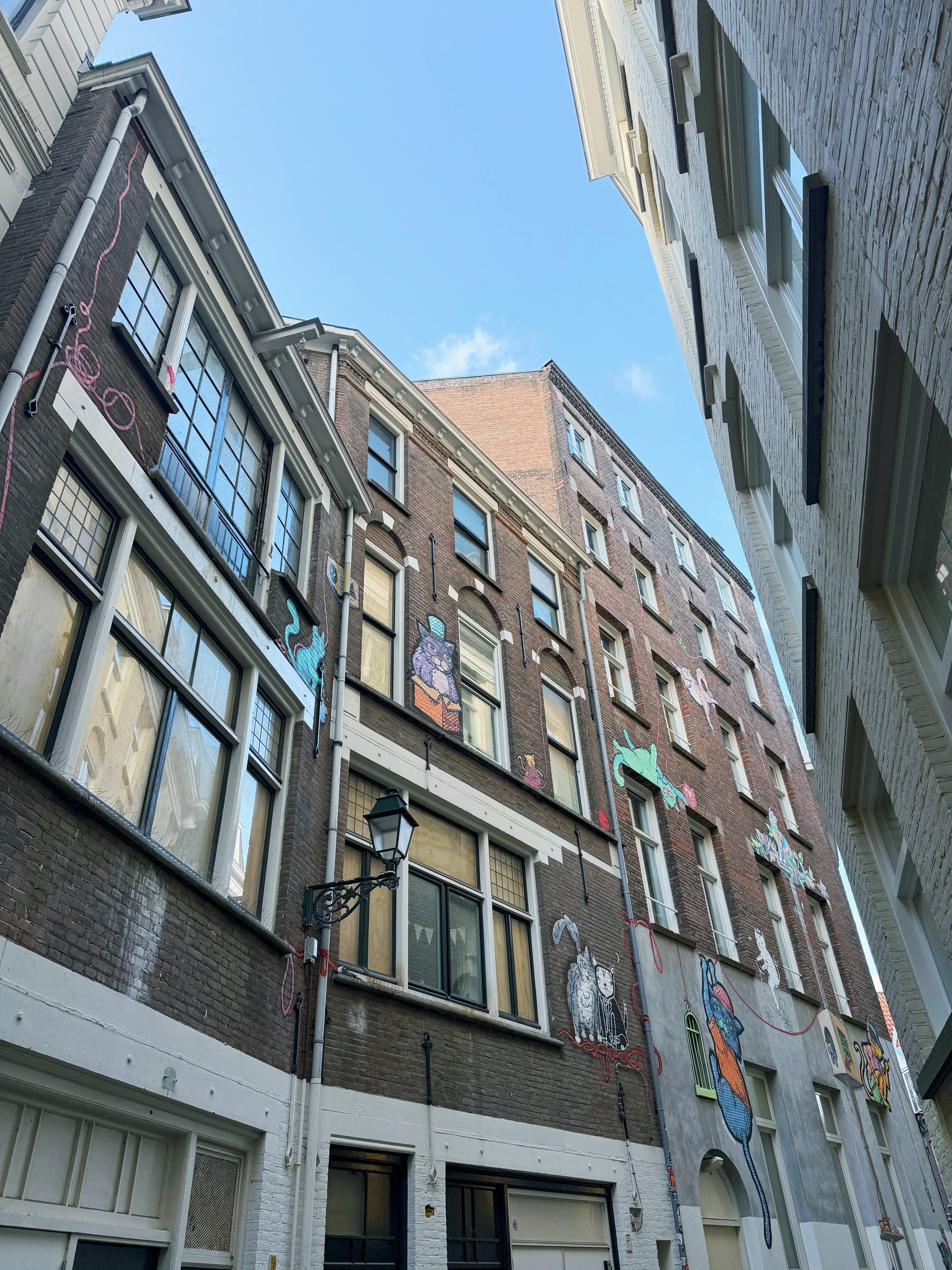 The Achterom alley in the center of The Hague was once a dark and unwelcoming place. The Municipality of The Hague decided to transform its atmosphere and launched a project to renovate such alleyways. The area was cleaned up, new lighting was installed, and the walls were decorated with illustrations of cats. Today, the alley has turned into a unique open-air gallery.
